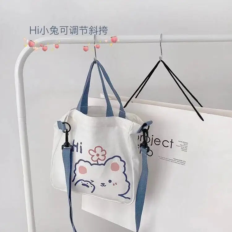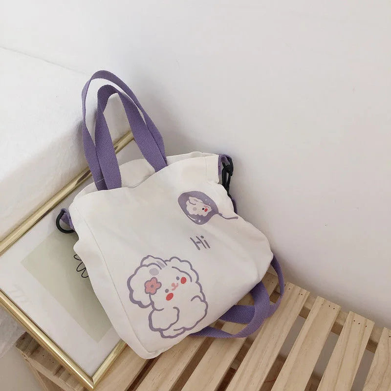 This cute and stylish canvas shoulder bag is perfect for women. Its cartoon design adds a fun touch to any outfit.