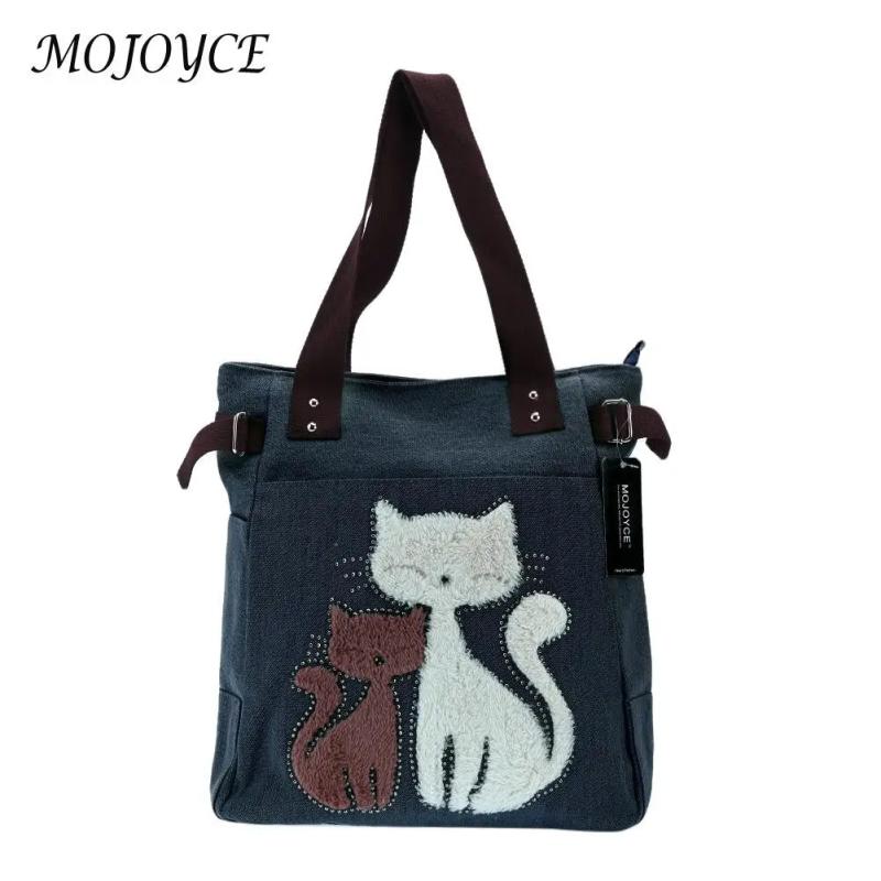 This canvas handbag is the perfect accessory for cat lovers. Featuring a cute cat print, this small underarm bag is ideal for everyday use. The vintage design adds a touch of retro charm to your outfit.