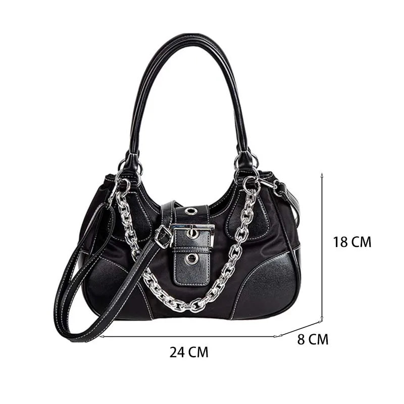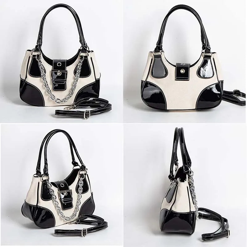This canvas underarm handbag is perfect for girls and women. It features a trendy Y2K design that is both stylish and functional.