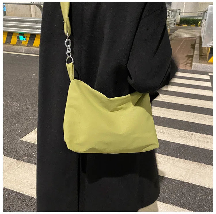 This women's tote bag is made of soft canvas material, featuring a chain strap, zipper closure, and a crossbody design. It's a stylish and eco-friendly handbag that's perfect for daily use.