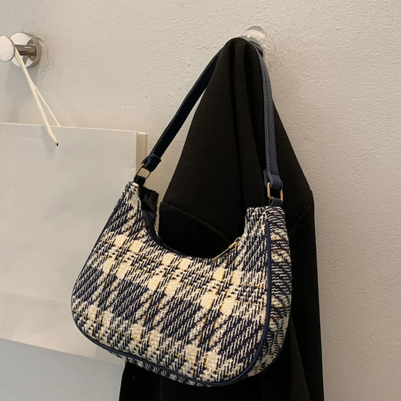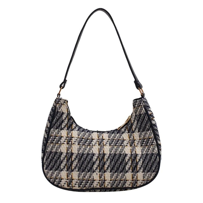 Canvas Crescent Shoulder Handbag Women Mini Tote HandBag Zipper Closure