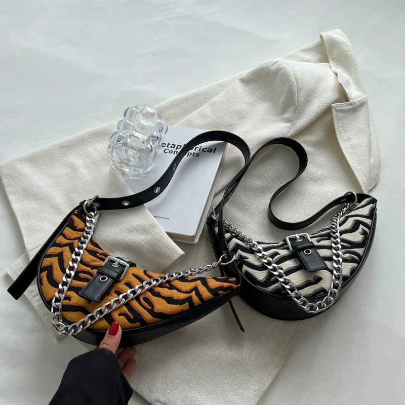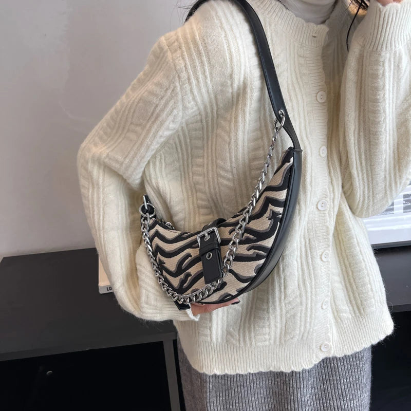 Canvas Croissant Shoulder Bag Chain Handbag for Women