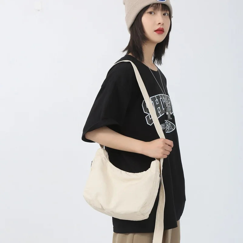 This large crossbody bag is made of durable cotton cloth, ideal for female students. Carry your books and essentials in style!