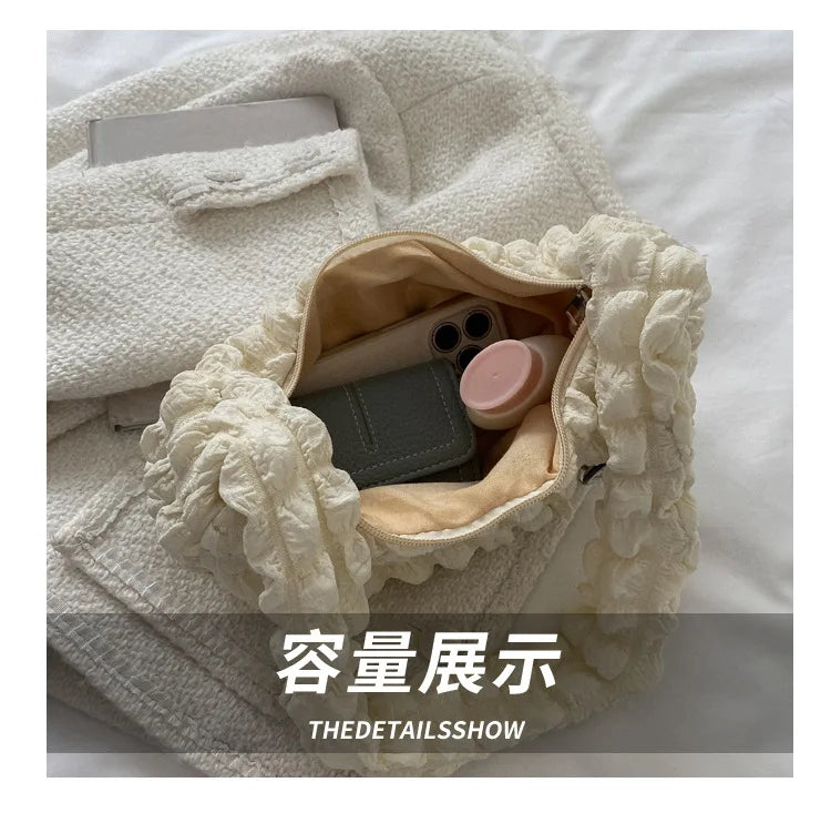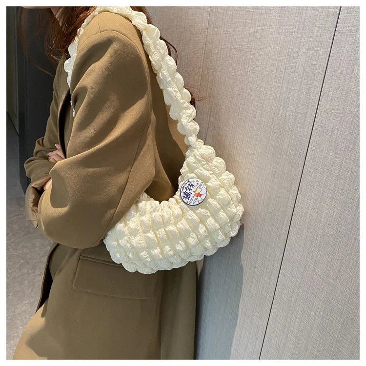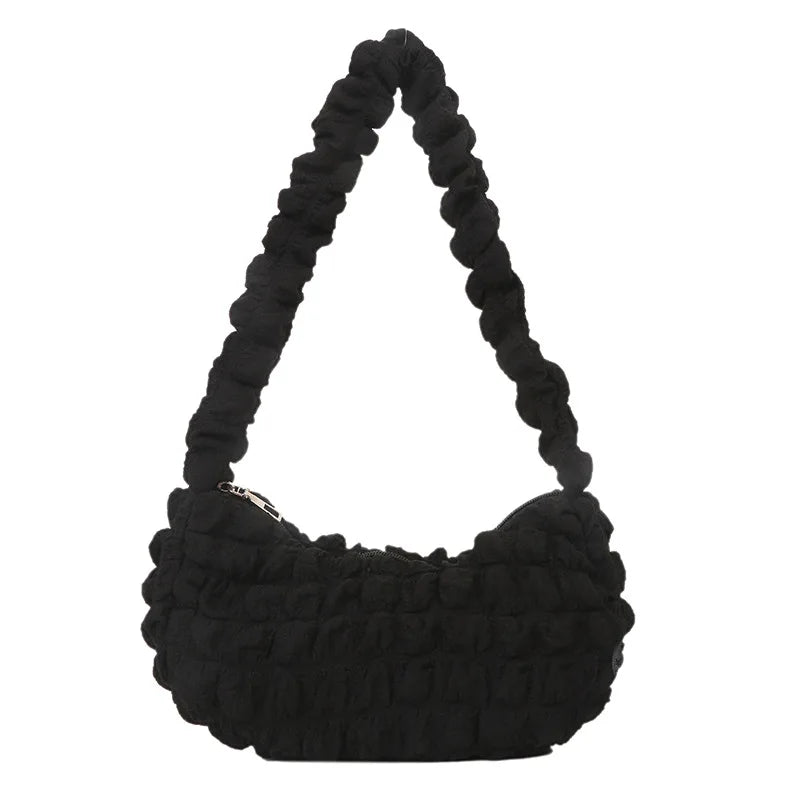 This stylish canvas shoulder bag is designed for women, featuring a half moon shape. It can be worn as a crossbody bag, perfect for everyday use.