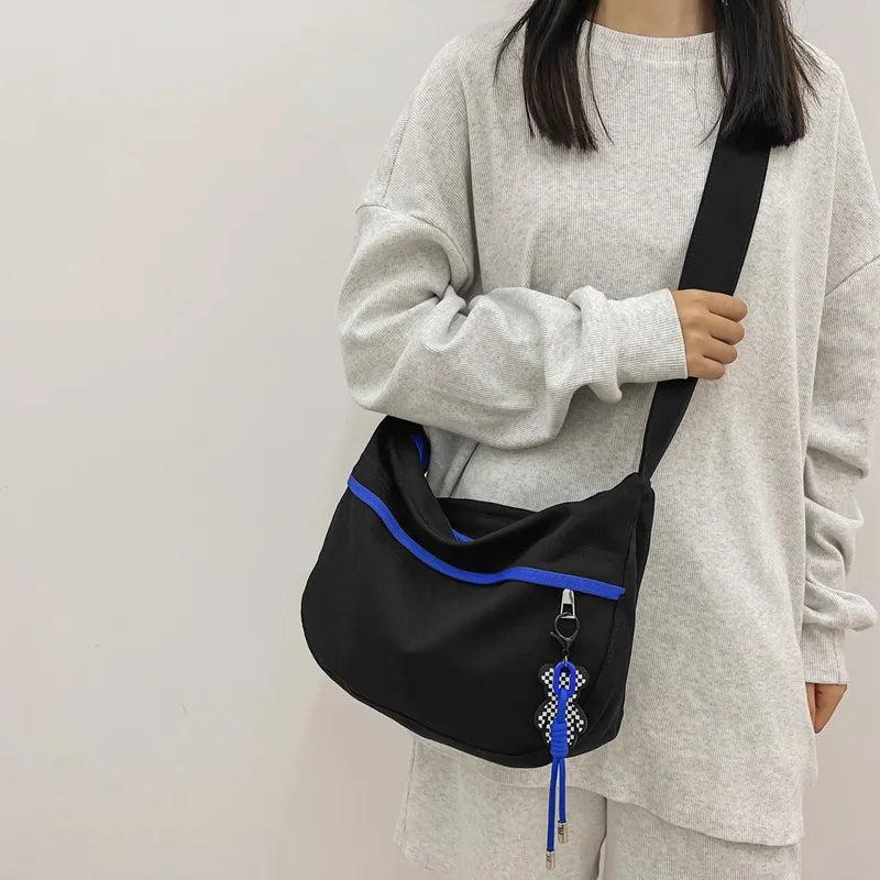 This women's shoulder bag is perfect for daily use with its spacious design. Made of high-quality canvas, it is ideal for carrying books, essentials, and more.