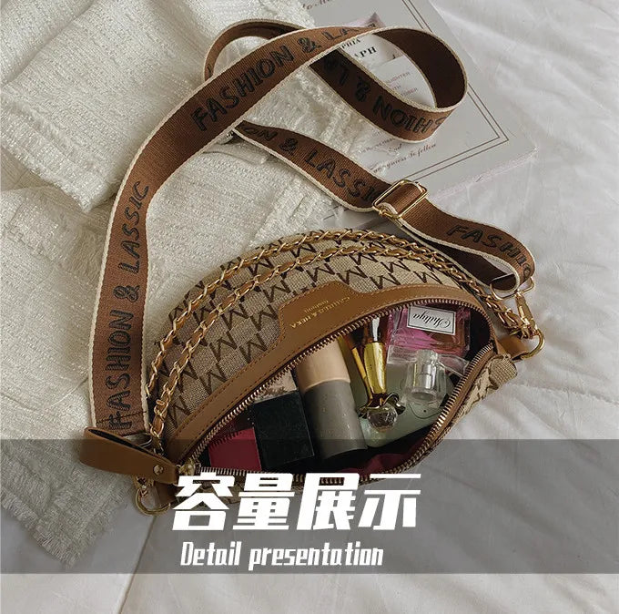 Canvas Crossbody Bag Plaid Pattern Fanny Pack for Women Chain Waist Pack