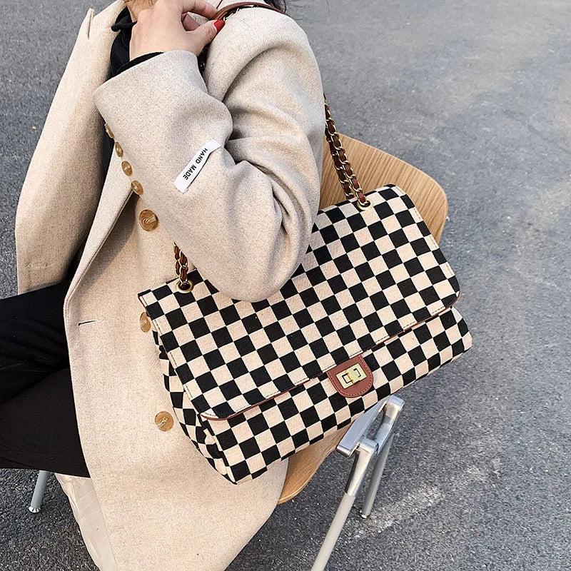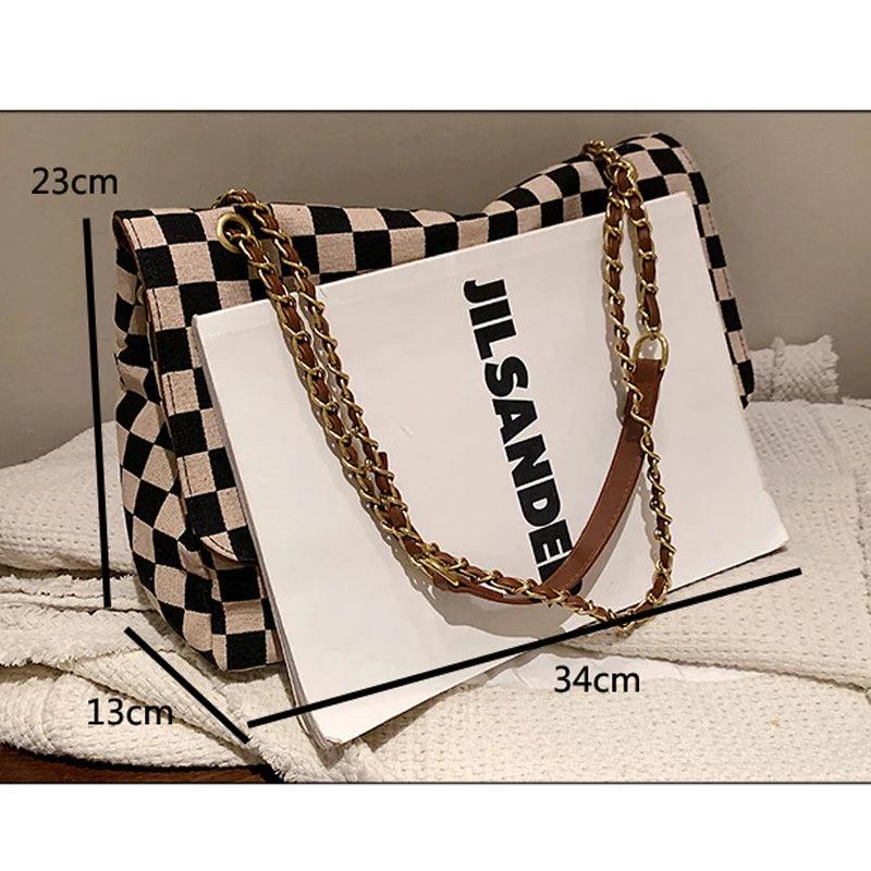 This canvas crossbody bag is perfect for women who want a casual and vintage look. It features a chain strap for added style and can be used as a shopper or messenger bag.