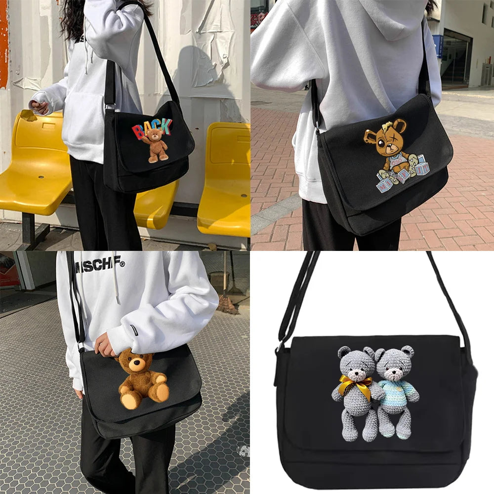Canvas Crossbody Bag Women Shoulder Satchel Envelope Pouch Bear Pattern
