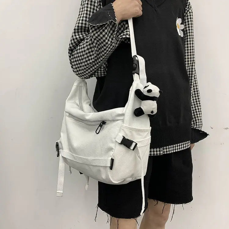 Stay stylish and organized with this practical canvas crossbody bag. Perfect for school, work, or everyday use, it features a diagonal cross design that adds a trendy touch to your ensemble.