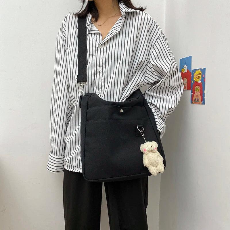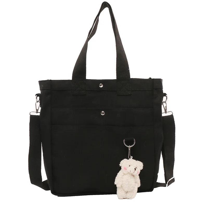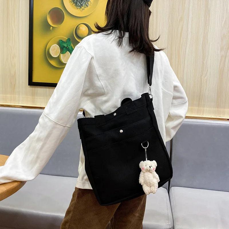 This canvas crossbody shoulder bag is designed for women who need a stylish and functional handbag. It features a solid color, large capacity, and comes with a pendant for a chic touch. Perfect for everyday use.