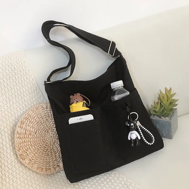 Canvas Diagonal Cross Bag Large Capacity Shoulder Bag Solid Women Messenger Bags