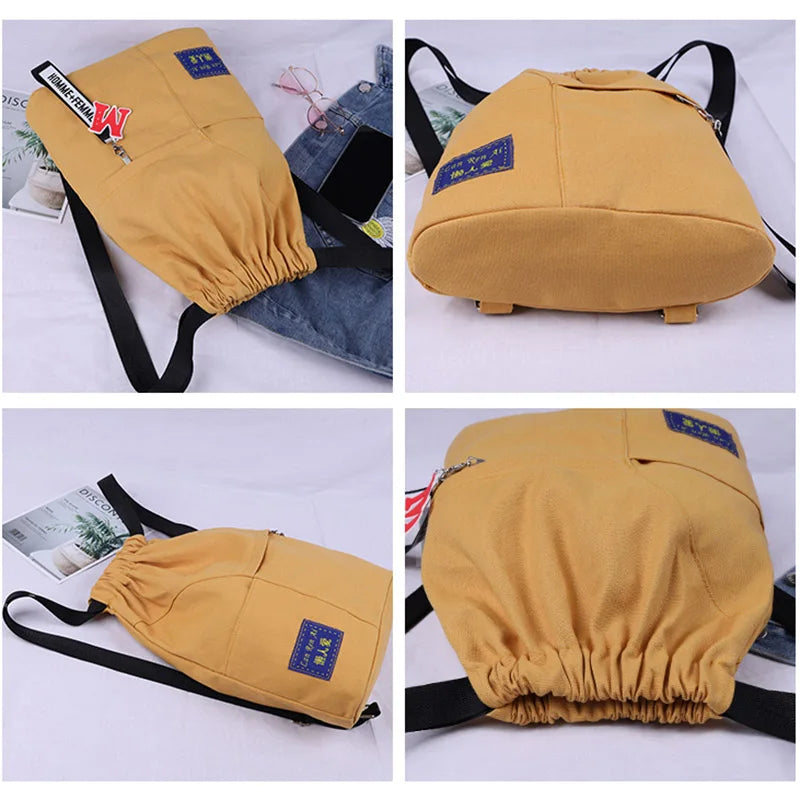 Canvas Drawstring Backpack Female Bagpack Student Backpack School Rucksack