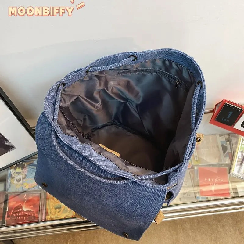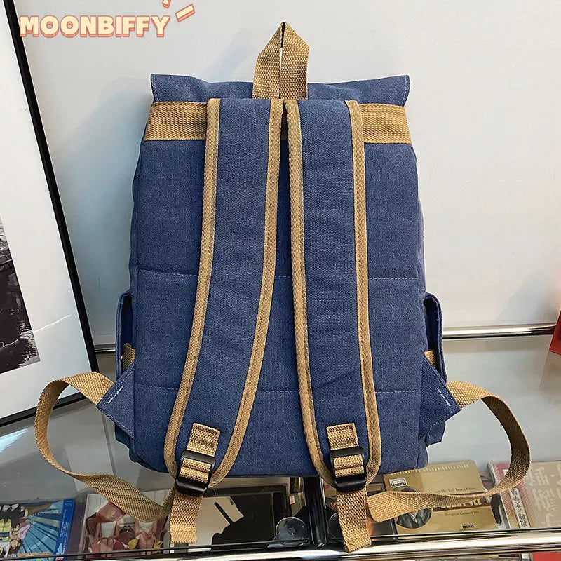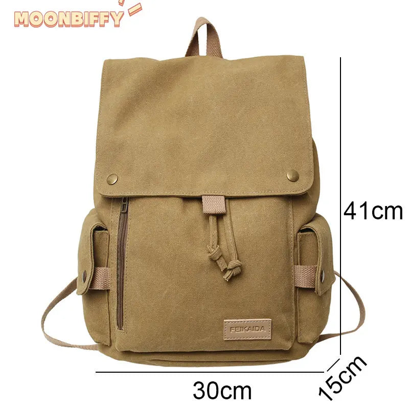 This canvas backpack is perfect for school, college, or travel. It features a drawstring closure and a laptop compartment.