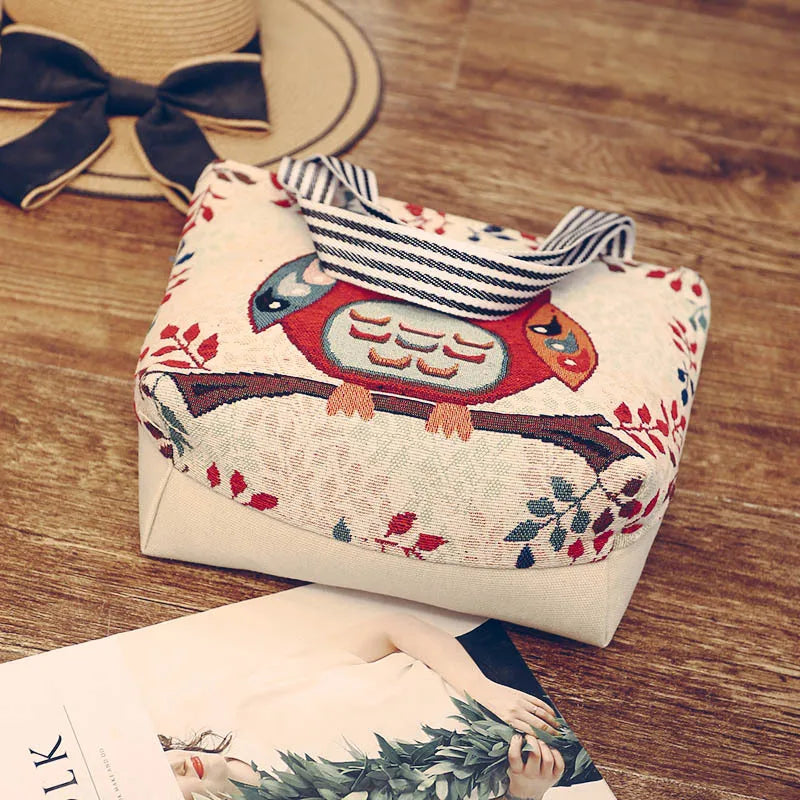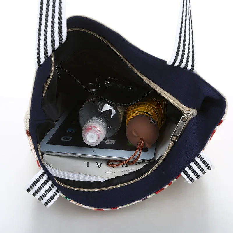 Canvas Embroidered Shoulder Handbag Women Messenger Bag