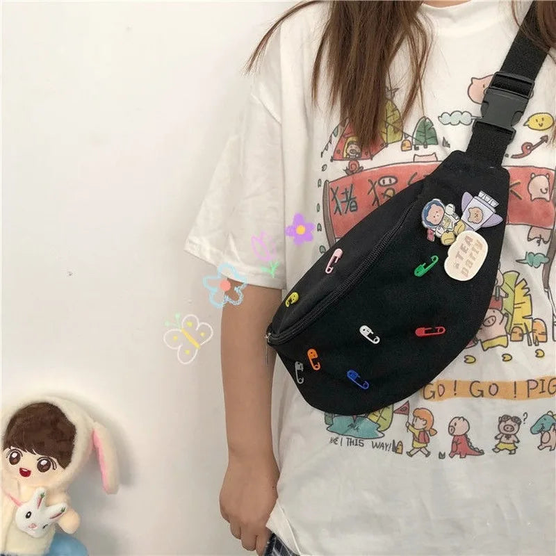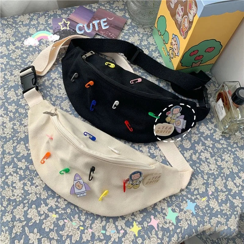 Casual Waist Bags Women Canvas Fanny Belt Pack Brooch Ladies Bum Bag Zipper Crossbody Pouch is a stylish and practical waist pack bag for students.