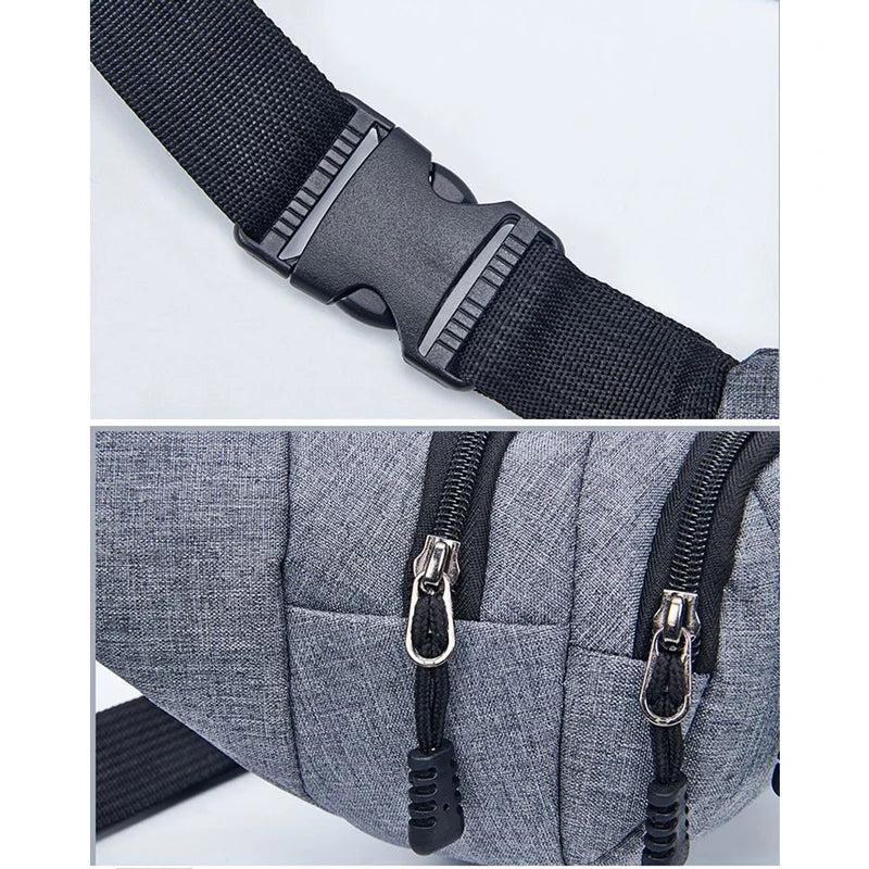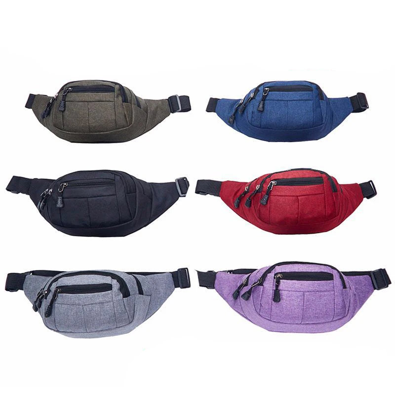 This canvas fanny pack is perfect for men and women on the go. It features four pockets for convenient storage and organization. Keep your essentials close at hand with this portable waist bag.