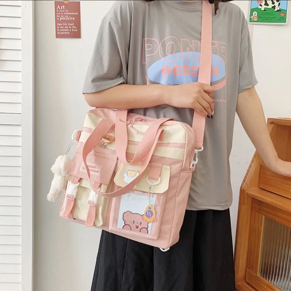 This canvas shoulder bag is perfect for students and those who need a large capacity bag. It can be used for school, work, or as a stylish accessory. The bag is also great for make-up essentials.