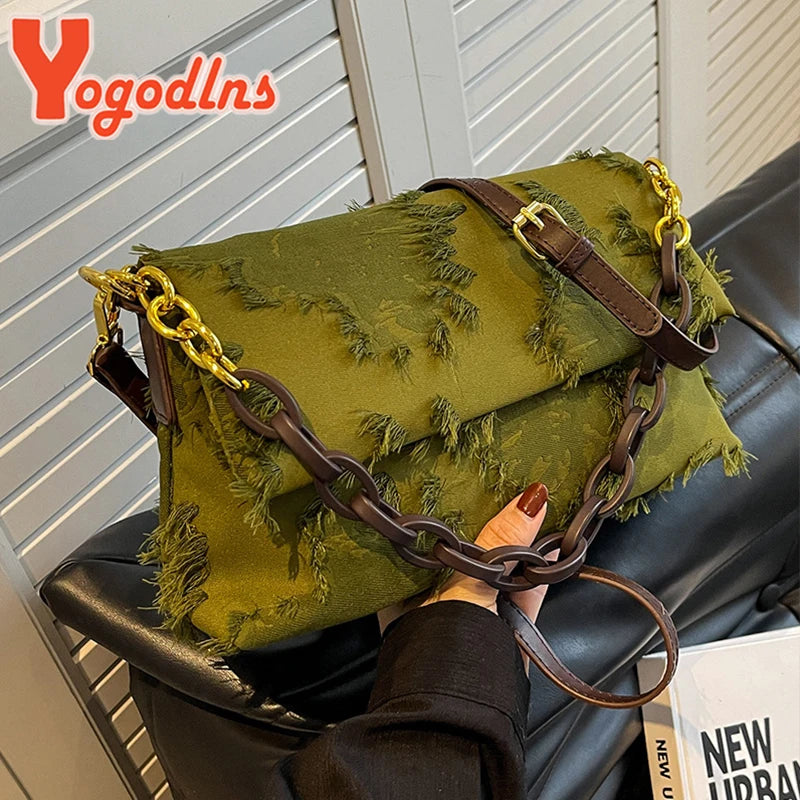 This stylish spring shoulder bag is made of durable canvas material, featuring a flap handbag design. Perfect for everyday use as a crossbody bag, satchel, or tote purse.