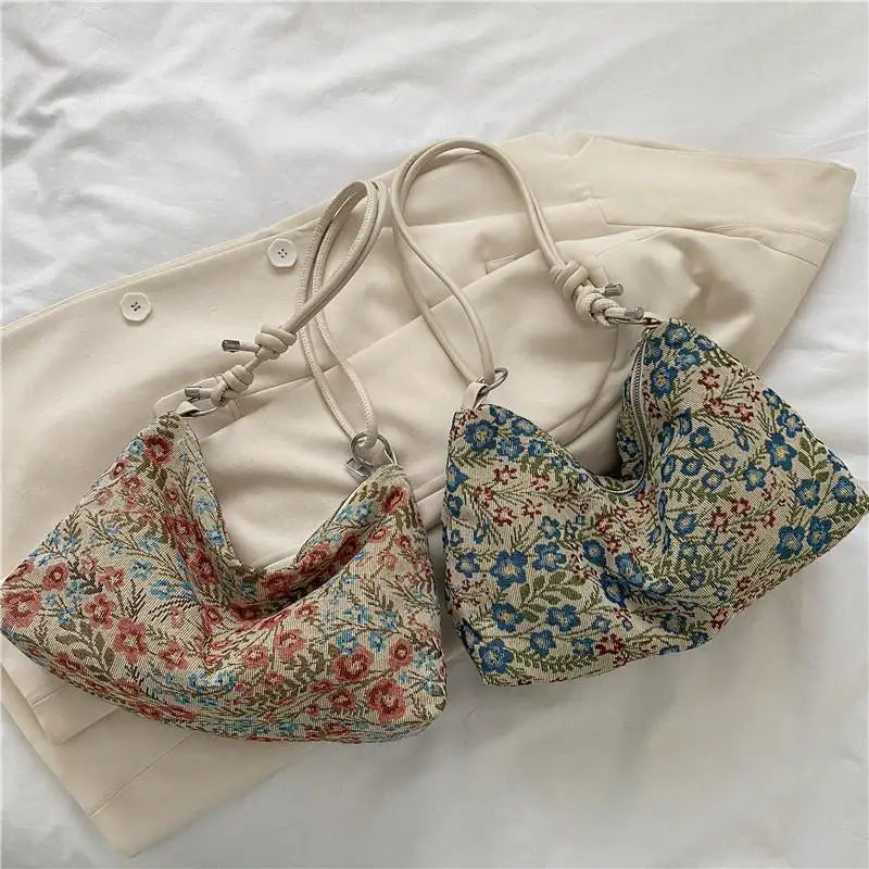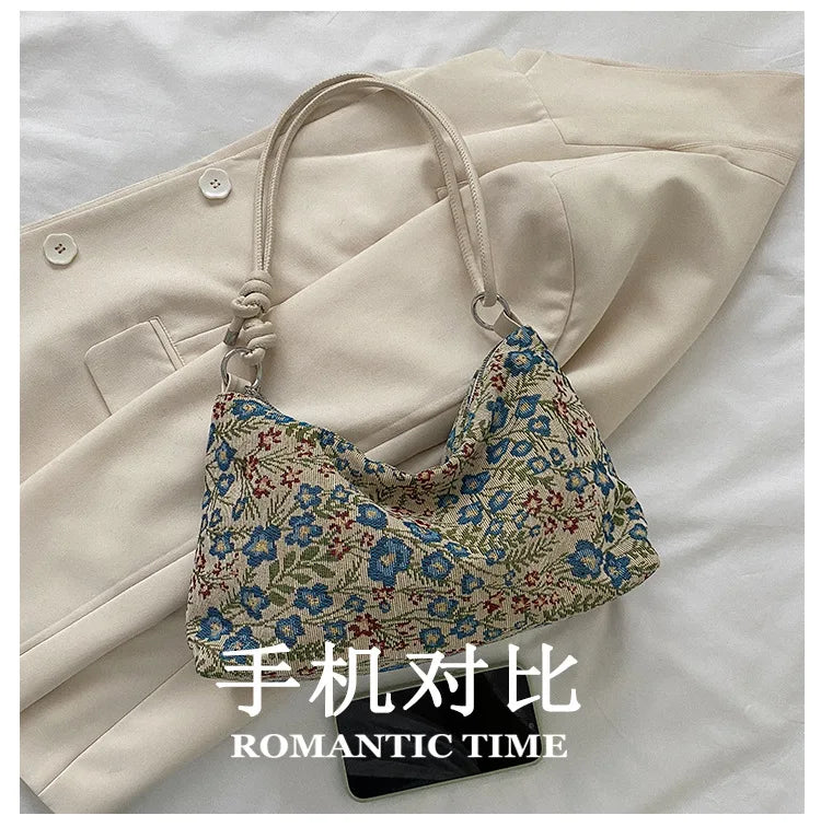 This stylish canvas shoulder bag features a beautiful floral print, making it perfect for adding a pop of color to your outfit.