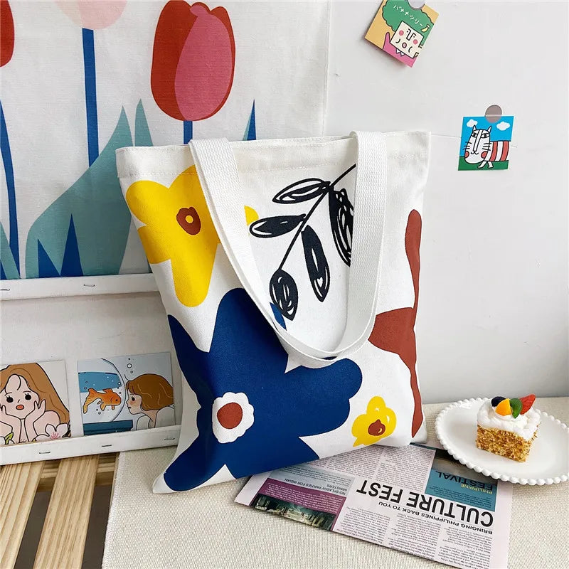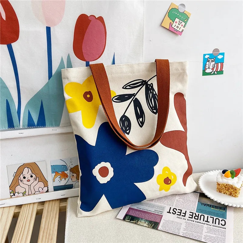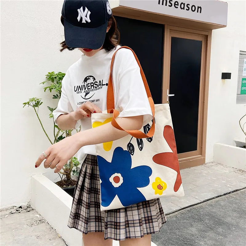 Stay stylish and organized with this canvas shoulder bag featuring a floral print. Perfect for students, it offers a large capacity and multiple compartments for books and essentials.