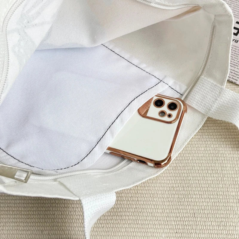 Canvas Floral Printed Shoulder Bag Zipper Satchel