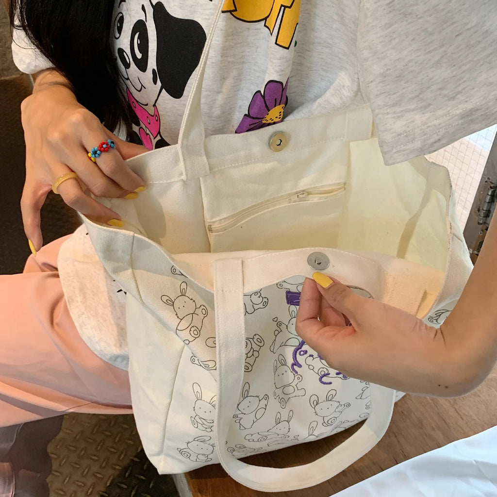 Canvas Floral Shoulder Bag Large Capacity Printed Shopping Bag
