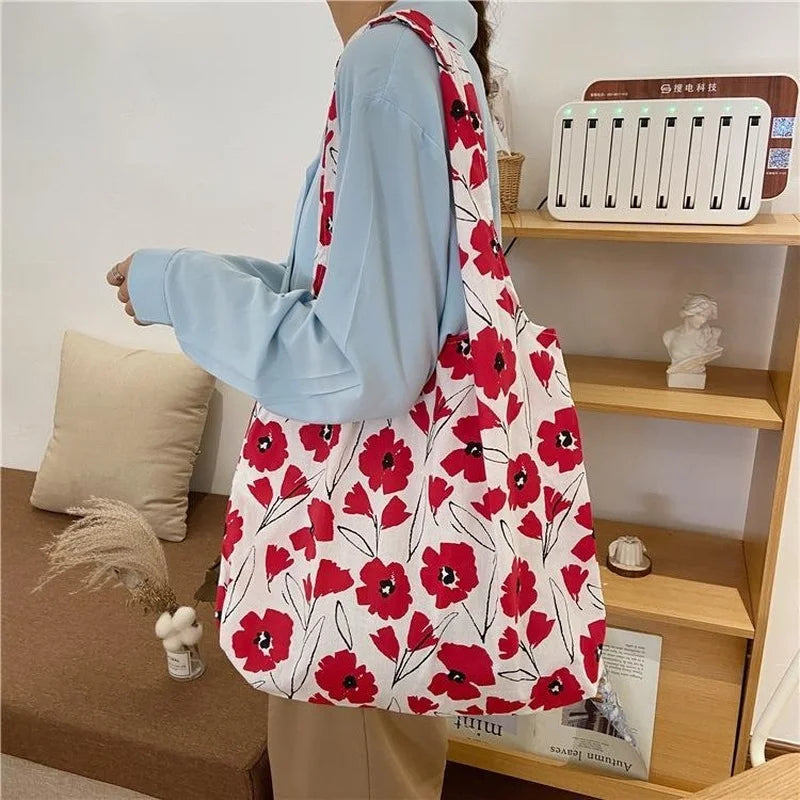 Canvas Floral Shoulder Bag Large Capacity Tote Eco Handbag Female Students