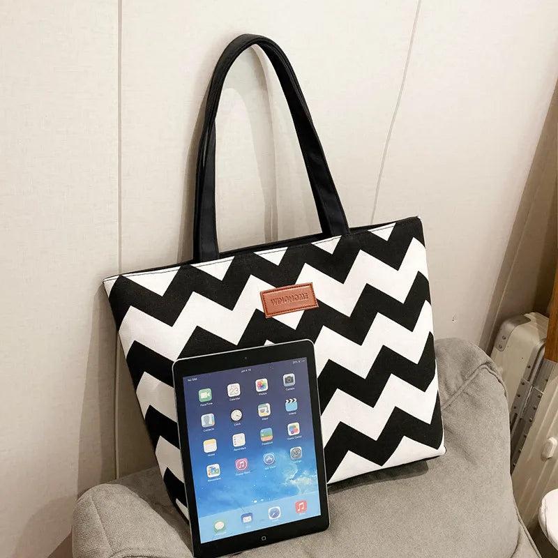 Stay stylish with this spacious canvas tote featuring a unique flower printing design. Perfect for beach outings or casual wear.