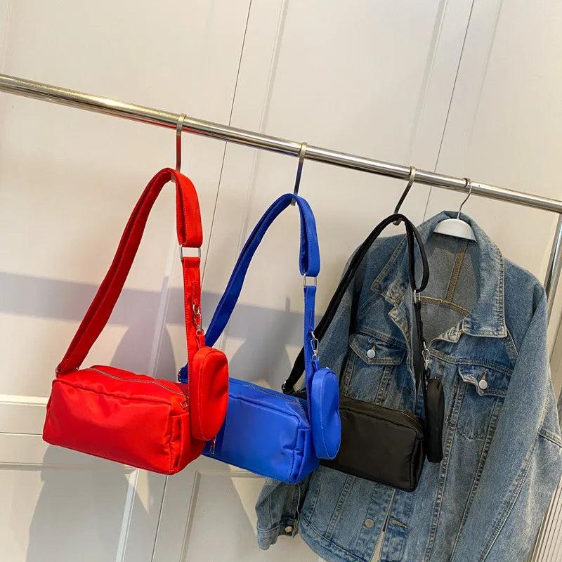 Stay organized and stylish with this versatile gym crossbody bag made of durable nylon material. Perfect for yoga, exercise, and everyday use.
