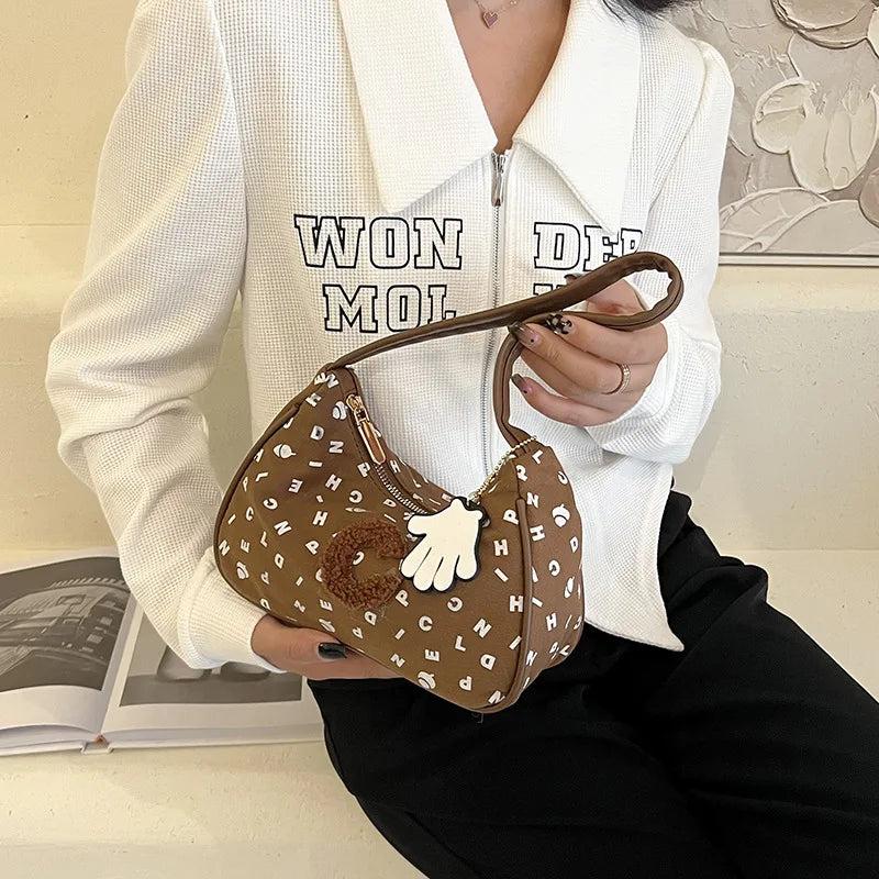 This stylish shoulder bag is made from durable canvas material. It features a half moon shape and is perfect for everyday use.