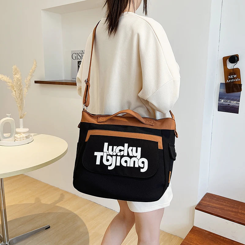 This canvas hand bag is designed for women who appreciate style and functionality. It features a large capacity to hold all your essentials and can be worn as a crossbody bag.