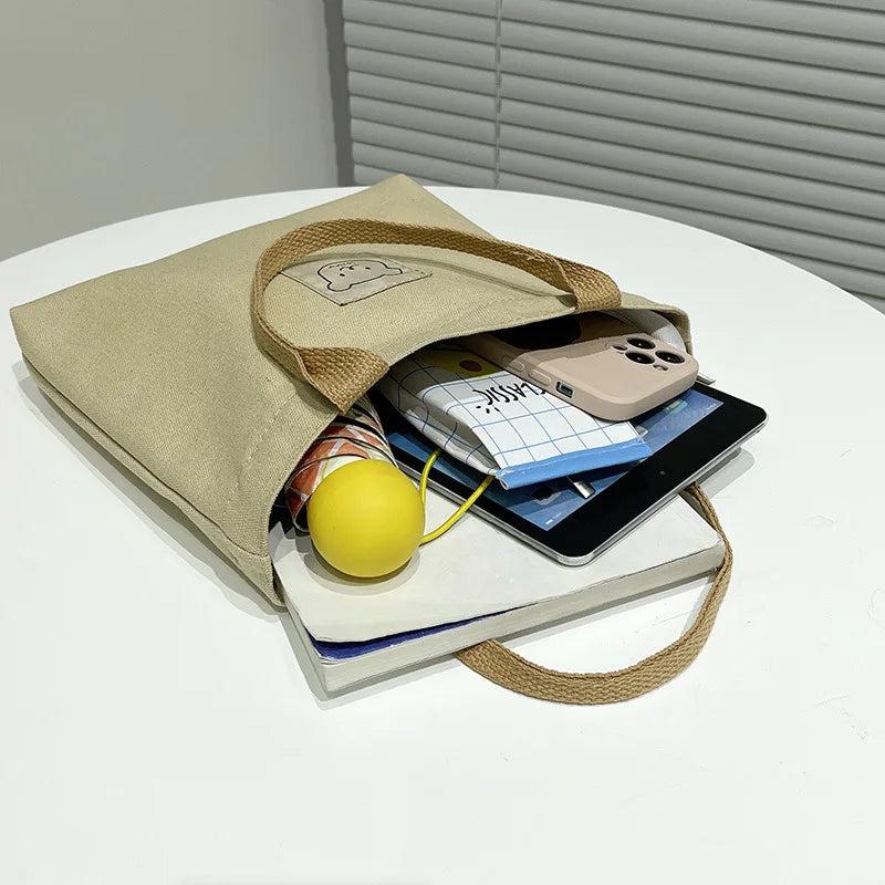This canvas handbag is perfect for girls and women. It features a shoulder strap and zipper closure, making it perfect for school or everyday use.