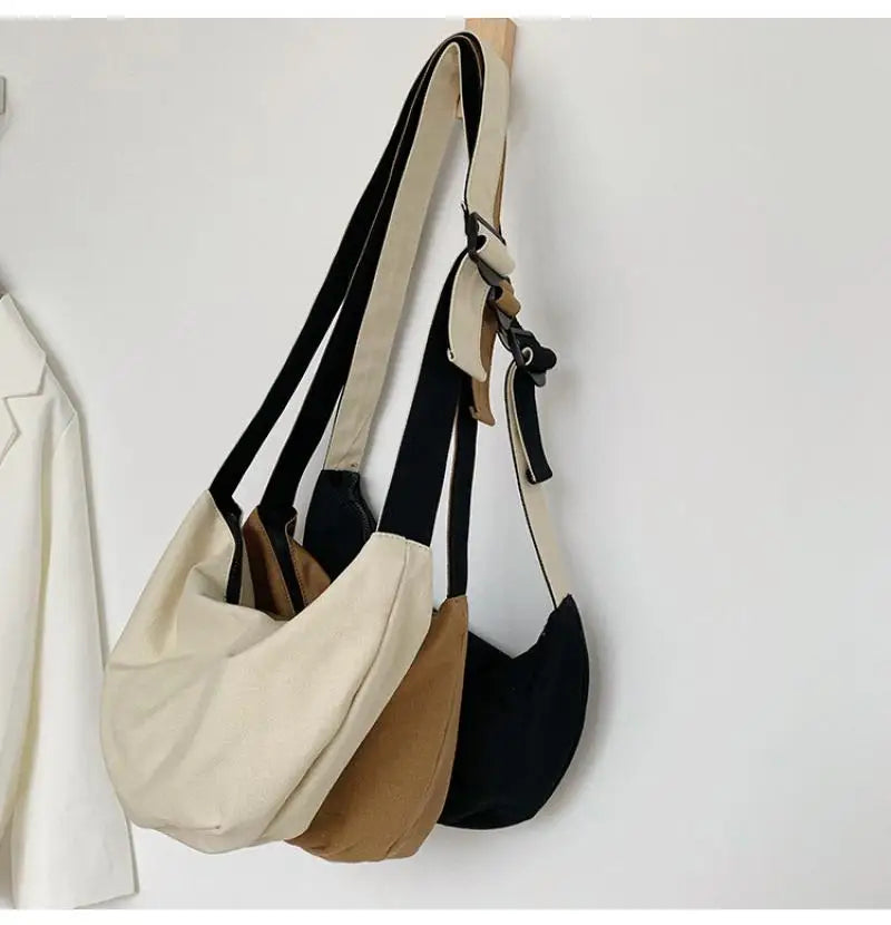 Canvas Hobos Crossbody Bags for Women Large Capacity Tote Lady Messenger Bag