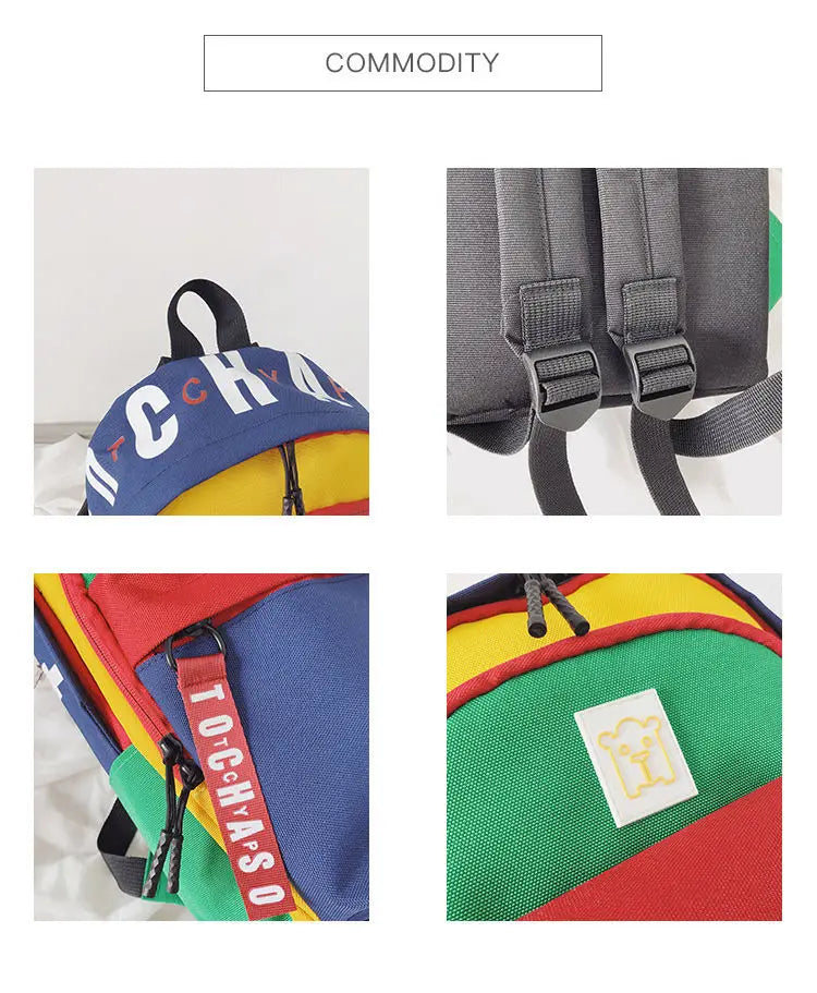 Canvas Kids Backpacks School Bags Splicing Student School Bags for Girls Boy