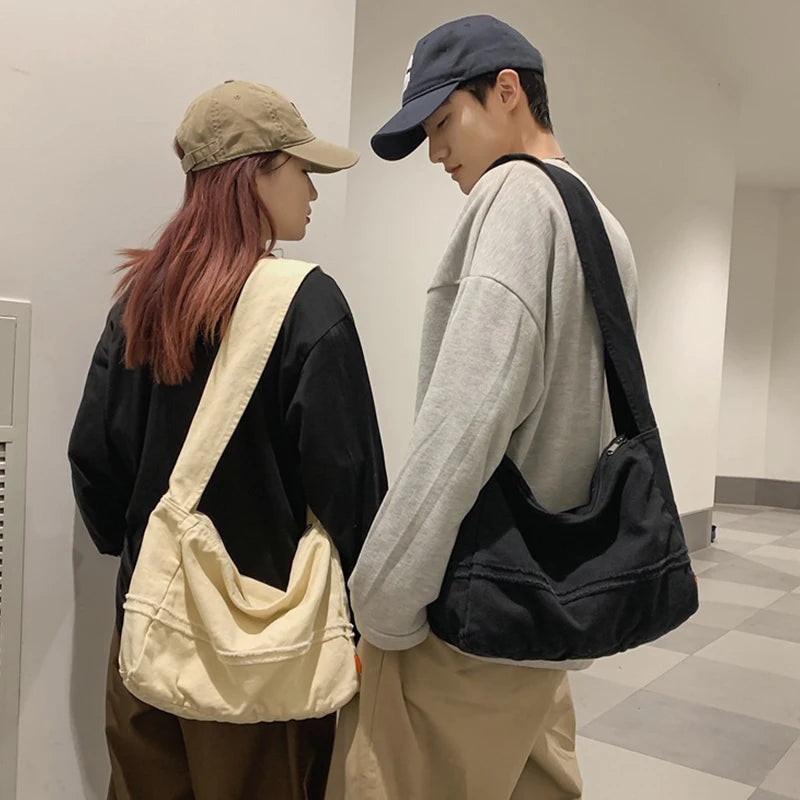 This casual canvas messenger bag is perfect for shopping, school or everyday use. It offers ample storage space and a comfortable shoulder strap.