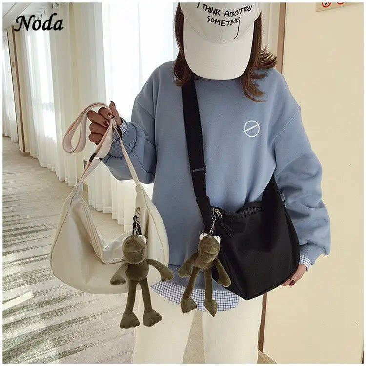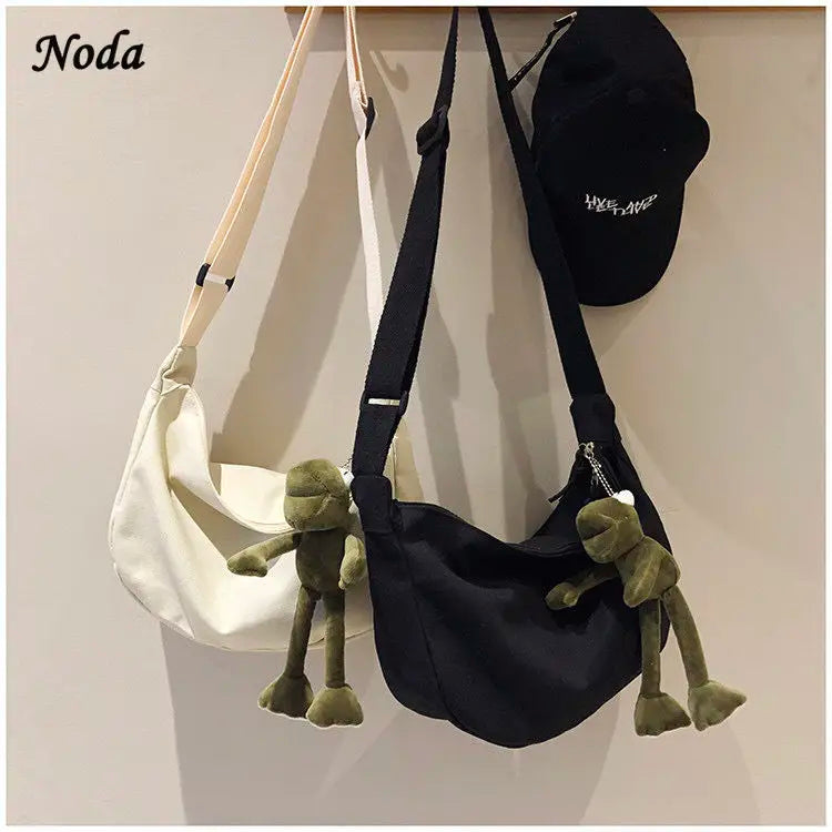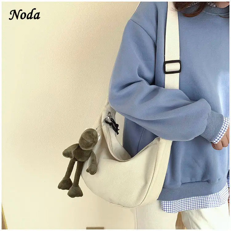 This canvas single shoulder sling bag is a neutral and stylish accessory perfect for women and girls. It offers ample storage space and can be worn as a crossbody bag.