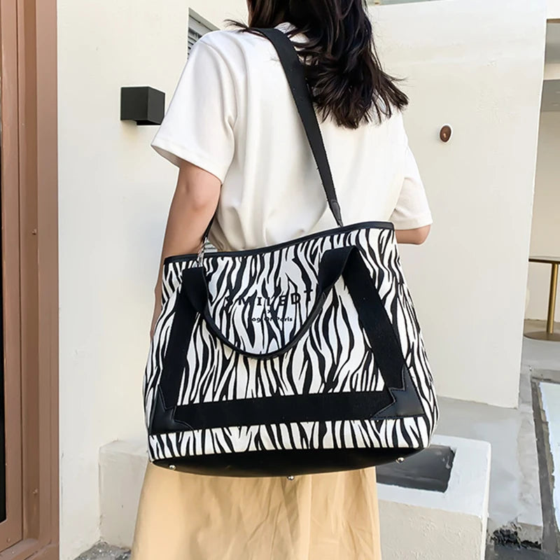Canvas Large Capacity Women's Shoulder Bag Shopping Tote Crossbody