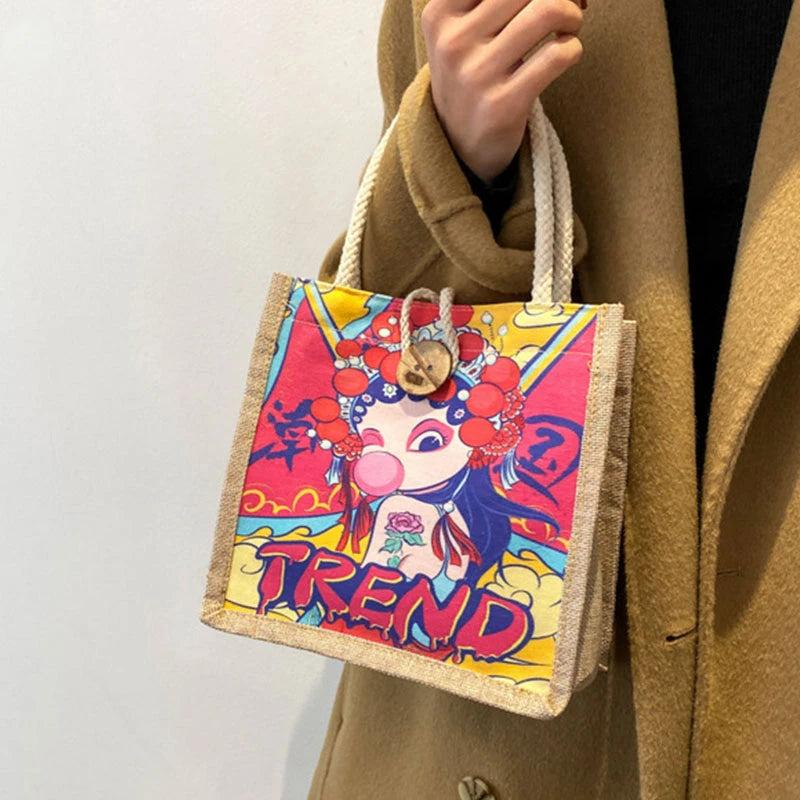 This stylish canvas lunch bag is perfect for girls to carry their meals while shopping or on the go. It's a convenient dinner container and food storage solution.