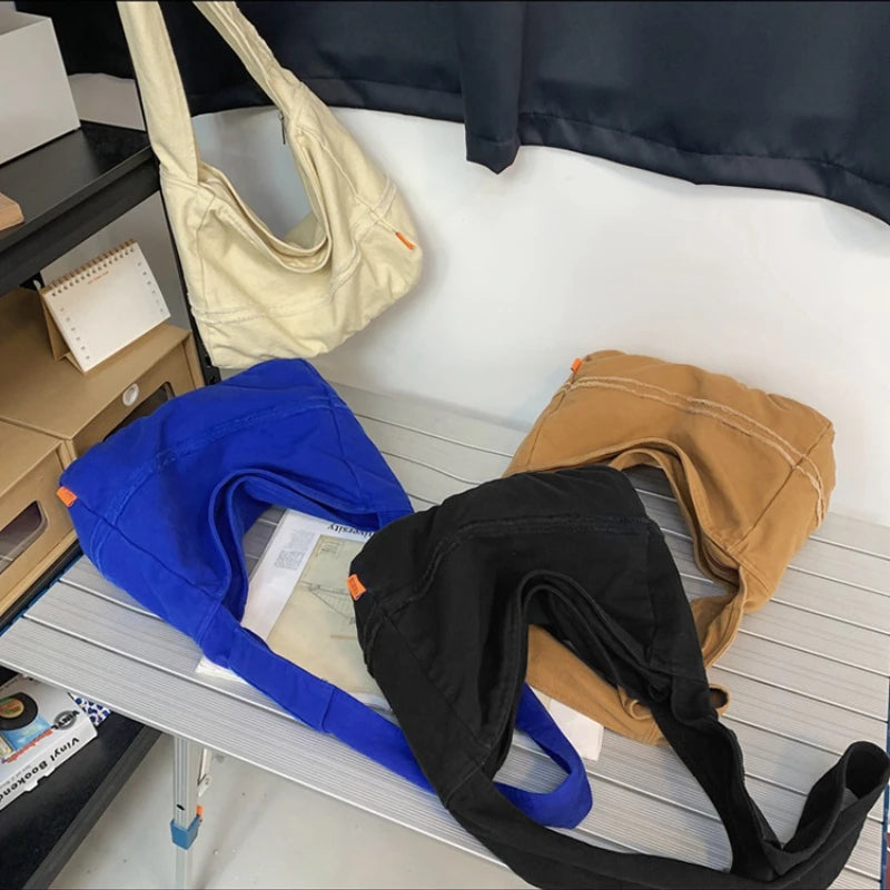 This canvas messenger bag is perfect for shopping, school, or everyday use. It offers a spacious interior and durable design suitable for both men and women.