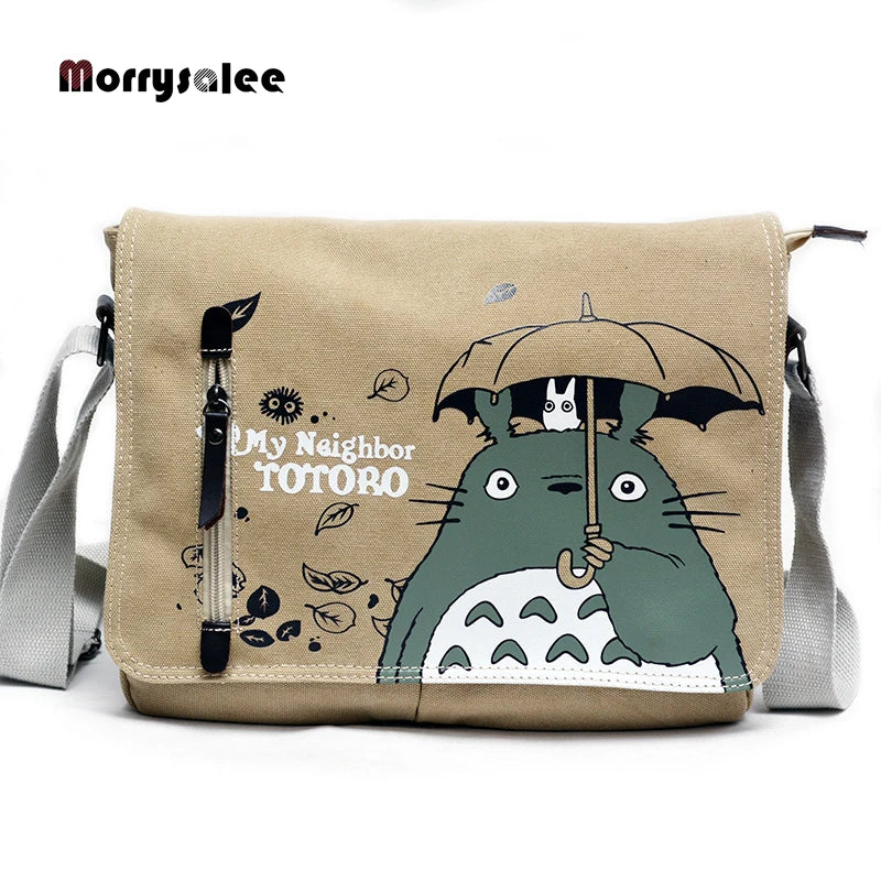 This crossbody bag is perfect for male students, featuring a fun cartoon paddle design. It is made of durable canvas and can be used as a shoulder bag.