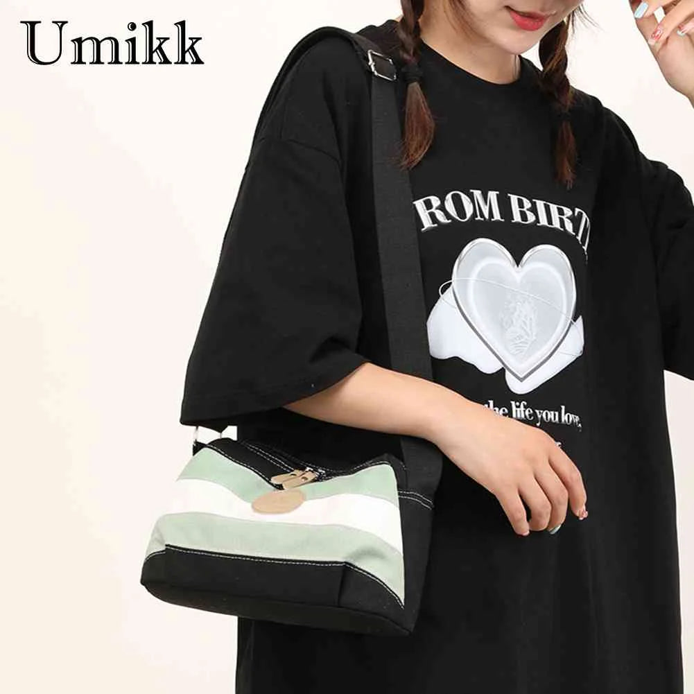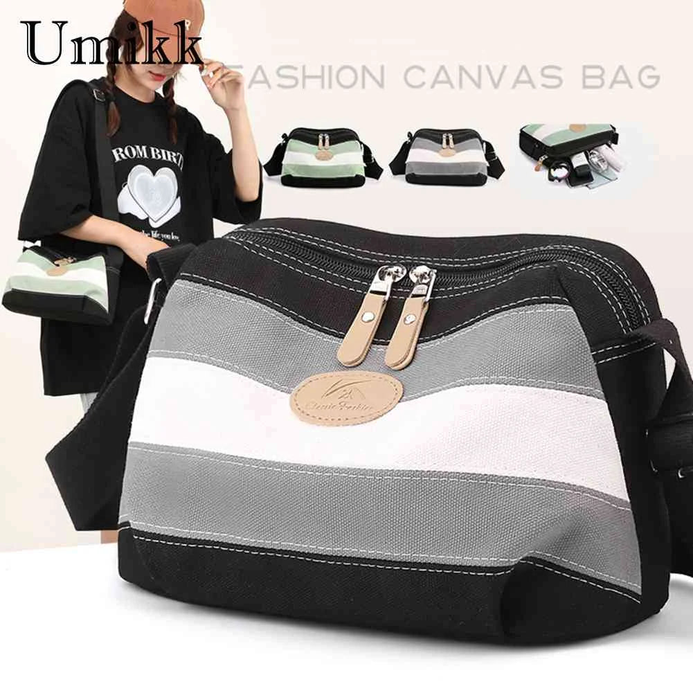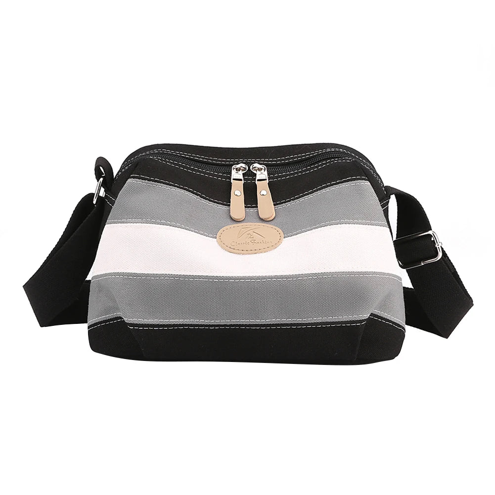 Canvas Messenger Bag Striped Retro Women Handbag Zipper Small Square