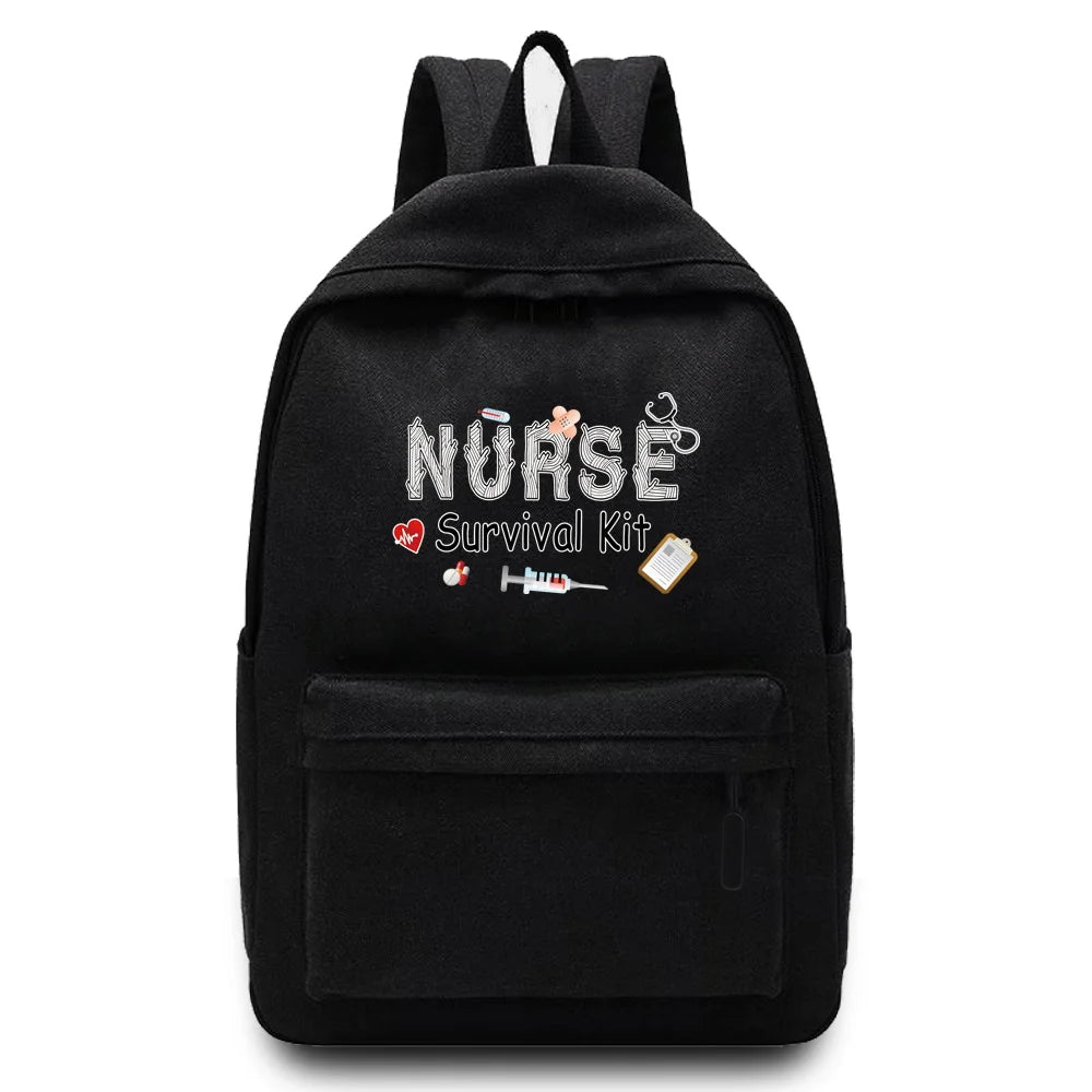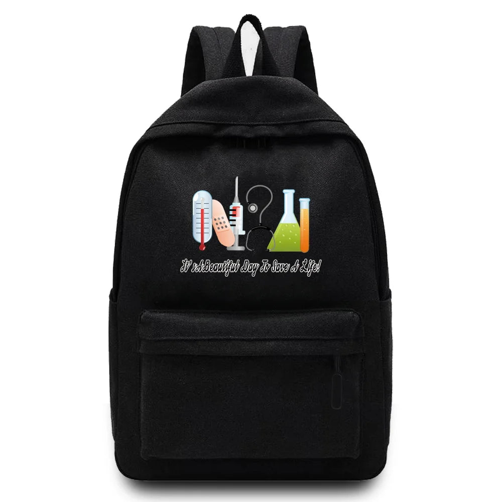 This unisex backpack is perfect for school or casual use. Made of durable canvas material, it features a fun nurse print design. The bag has a large capacity to hold all your essentials.