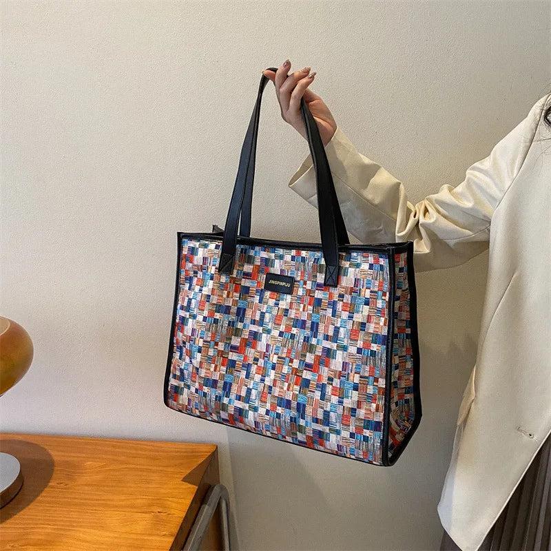 Canvas Rainbow Crossbody Shoulder Bag Large Handbag