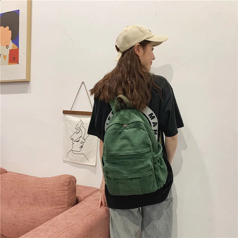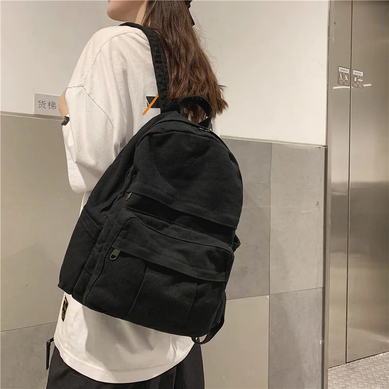This soft canvas backpack is perfect for college students, featuring a spacious design to fit A4 books. Ideal for teenage girls and boys, this schoolbag is both stylish and functional.