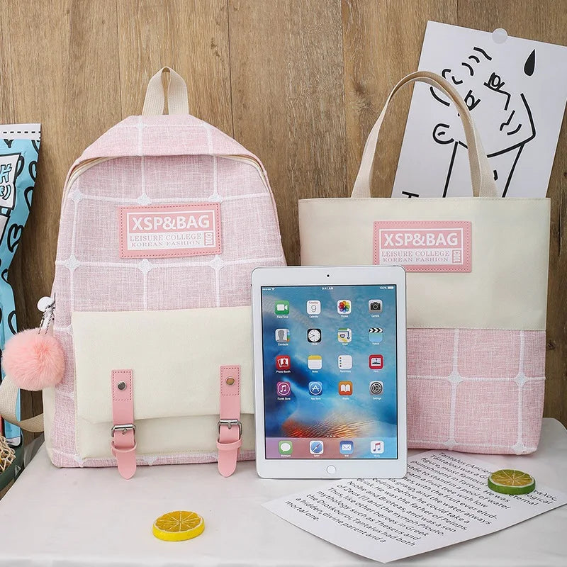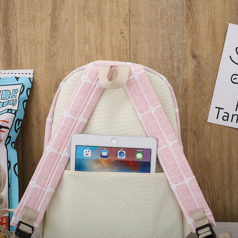 This 4-piece set of canvas school bags is perfect for teenagers, girls, and female students. It is ideal for travel and school use.