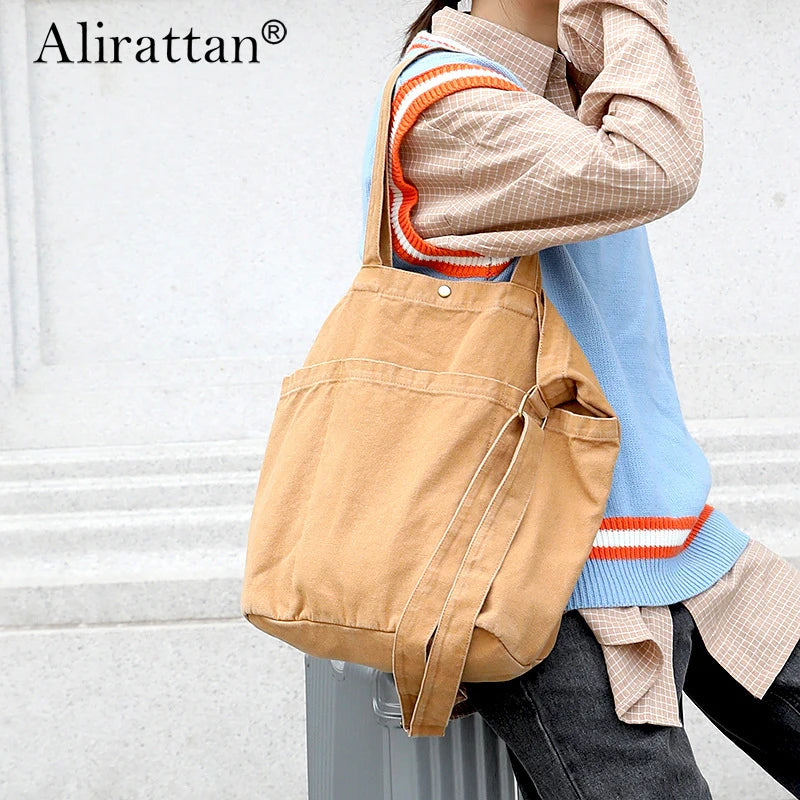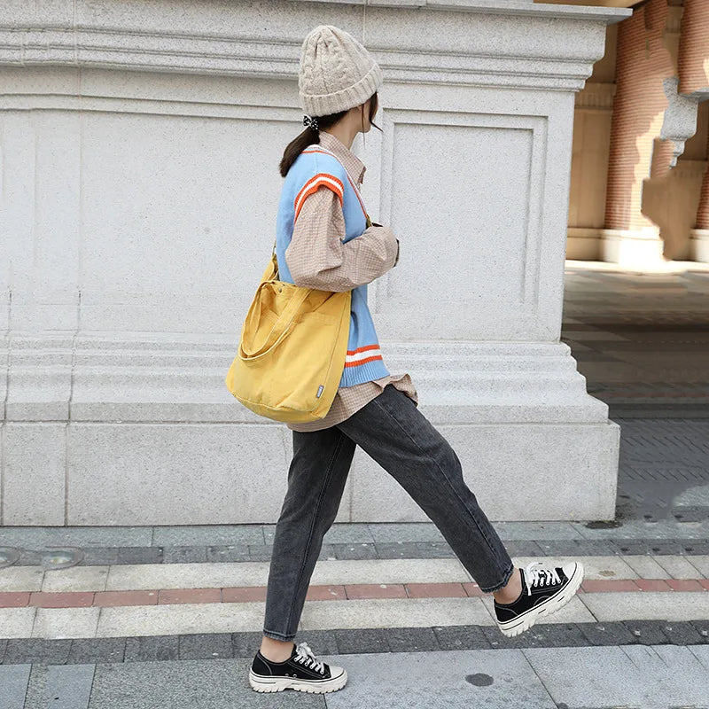 Canvas School Messenger Bag Large Capacity Casual Shoulder Handbag for Women