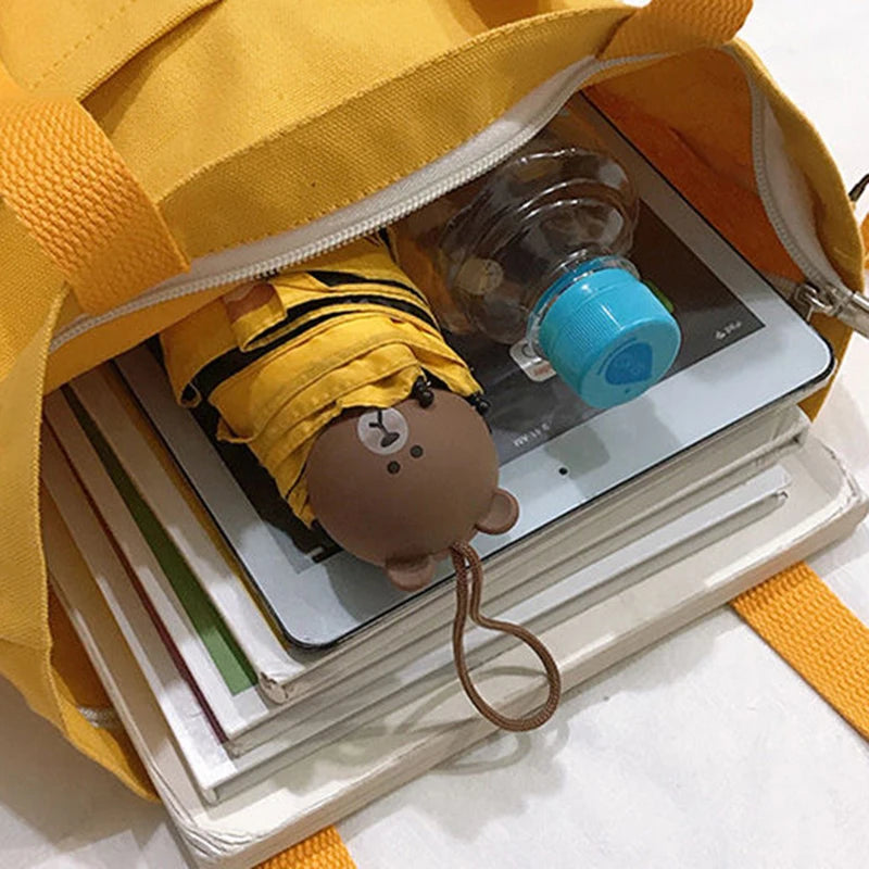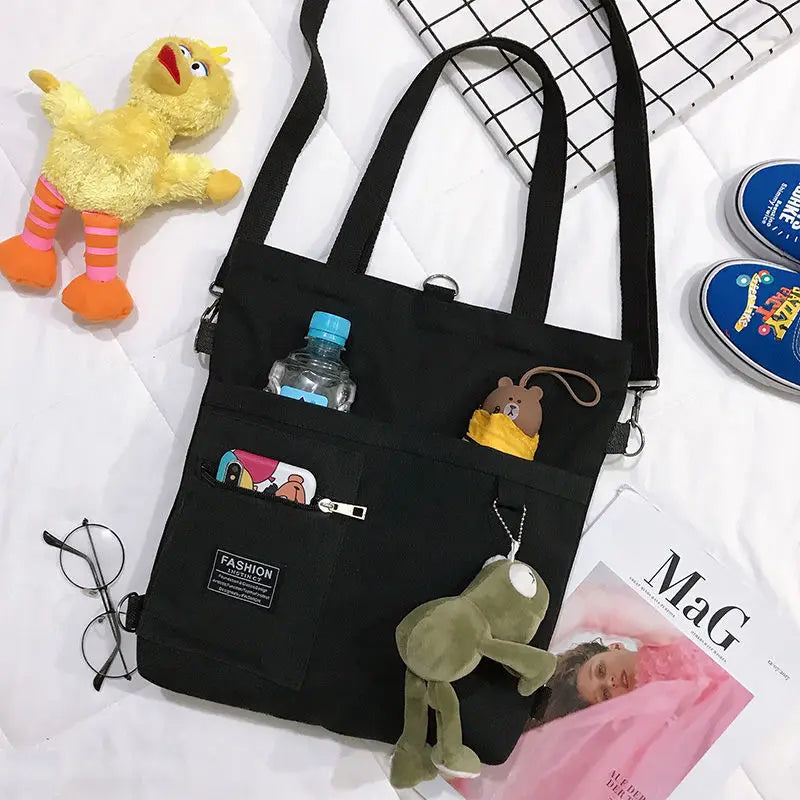 This canvas shoulder bag is perfect for women and students. It has a large capacity, preppy style and can be used as a crossbody bag. Ideal for everyday use.