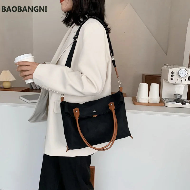 This versatile shoulder bag is perfect for women who need a spacious and stylish accessory. Made of durable canvas, it features double shoulder straps for easy carrying and can be worn as a shoulder bag or a diagonal bag.