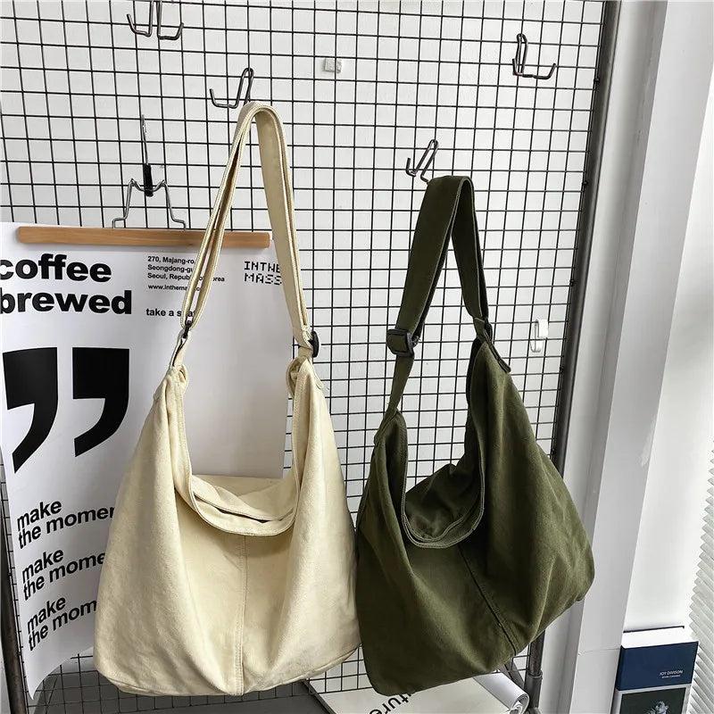 This women's canvas shoulder bag is made from thick cotton cloth, offering a spacious design for all your essentials.