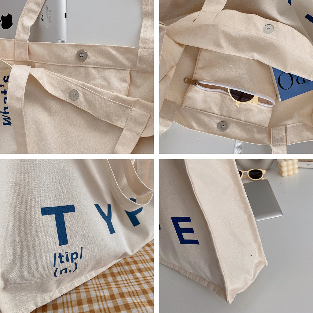 This women canvas shoulder bag is designed with letters and offers a large capacity, making it perfect for casual use. The bag is made of cotton cloth, ideal for shopping or carrying books.